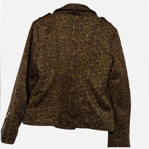 Women's Faux Suede Leopard Print Moto Jacket Full Zip Sm Boho Biker Zip Cuffs