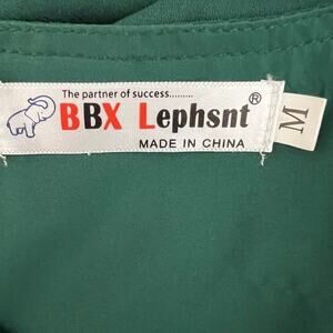 BBX Lephsnt Women's Faux Wrap Dress Size M Green Pleated Skirt Surplice Bodice Knee Length Fabric Belt