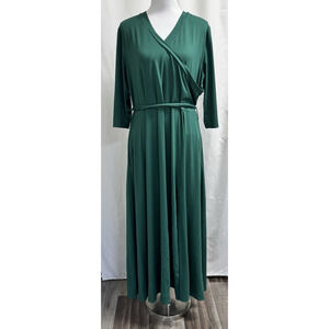 Women's Faux Wrap Maxi Dress Forest Green Long Sleeves Women's Size 2X