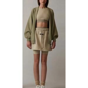 Women's Fear of God Essentials Fleece Mini Drawstring Skirt in Wheat size L