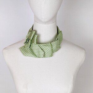 Elevate your office style with our fern green skinny ascot scarf, handcrafted from a repurposed necktie. This unique accessory adds a pop of color to your work wardrobe, effortlessly blending professionalism with personality.