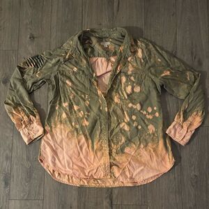 Women’s Fight Like a Girl Tie Dye button down Shirt Top Blouse Orange Green XXL