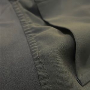 These have been worn and have a few indications of use. There is a small stain on the upper part of the pants that's smaller than a dime size. The draw strings also have some wear (see pictures of both).
