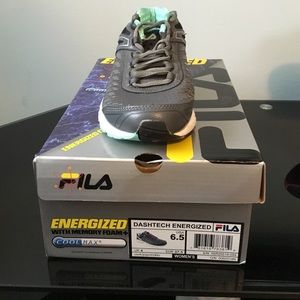 Womens Fila Dashtech energized with memory foam. Size 6&12. Gray/purple/cockatoo. Comes with second pair of purple laces. Extremely comfy. Only worn around house to try on