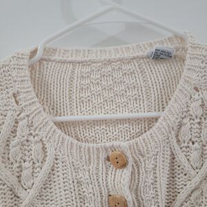 Womens Fisherman Cardigan Size Small Ivory Cable Knit Chunky Knit Granola