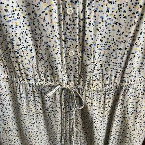 DETAILS: Features a button front closure, half sleeves with feminine gathering, side pockets and an adjustable drawstring at waist for all-day comfort and a flattering fit. The A-line shape creates beautiful drape and movement