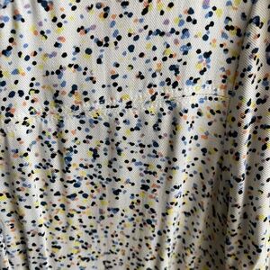 COLOR: Off-white confetti print (blue/black/yellow/orange/purple)