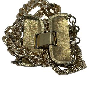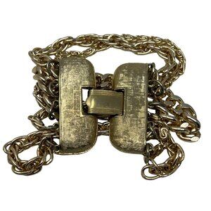 Womens Five Chain Bracelet Gold Tone Wide 7 inches Long