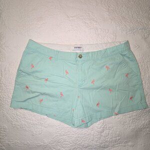 Pink Flamingo on Teal shorts. Old Navy, size 14.