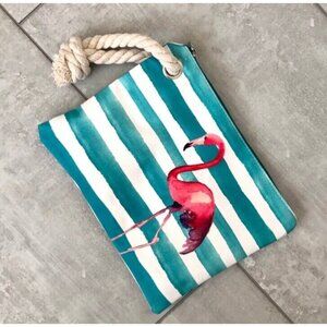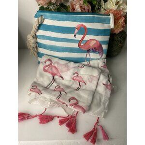 Womens Flamingo Tote Canvas Bag with Swim Suit Cover Pareo Beach Vacation NWOT