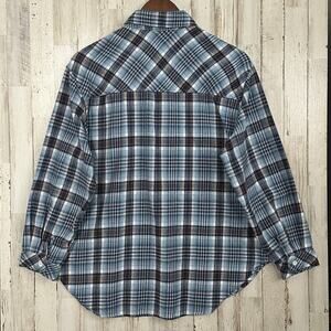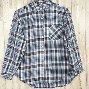 Womens Flannel Plaid Shirt Large Blue Brown Cotton Western Cowgirl Farmcore EUC