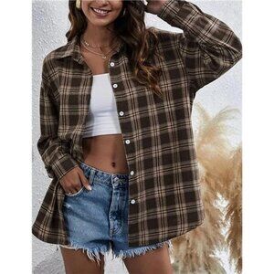 Womens Flannel Plaid Shirts Oversized Button Down Shirts Blouse Tops