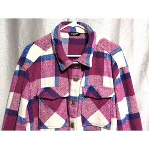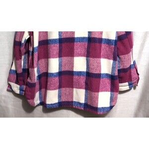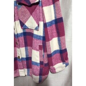 Women's Flannel Shacket Size XL Button Up Long Sleeve Warm Plaid Purple Pink