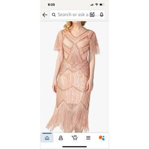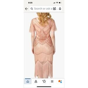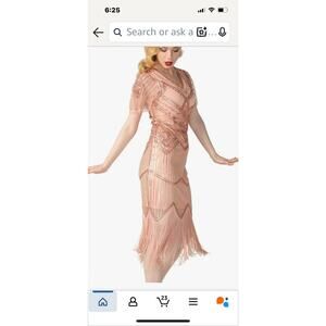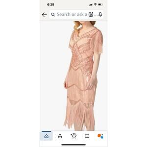 This Women's Flapper Dress from the 1920s is inspired by Gatsby's era with its beaded fringe and scalloped detailing. The short mini dress features a sleeveless design with a zip closure for easy wear. Made from polyester, it is in a stylish beige color perfect for parties and cocktail events. The dress is machine washable and has a regular size M, suitable for women looking to embrace the vintage glamour of the 20s. The brand, prettyGuide, ensures quality and style in this captivating piece.