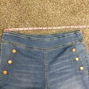 Women's Flare Leg Sailor Denim Jeans High Waist Button Accent Wide Leg
