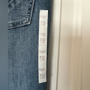 Stylish women's flared denim jeans featuring unique patterned insets. Perfect for a chic, casual look.