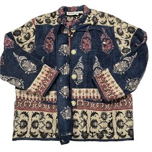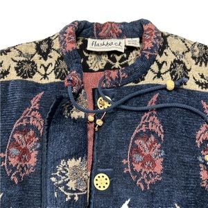 Women's Flashback Tapestry Cardigan Jacket Embroidered Ceramic Buttons size L