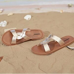 Womens Flat Sandals Size 9 Gold Color summer shoes Veittes