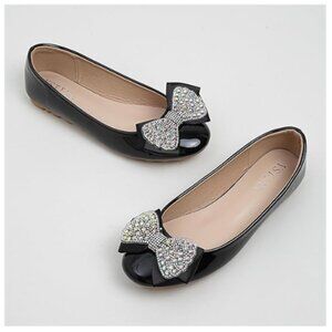 Women's Flat Shoe Patent Leather Comfortable Round Toe Bow Slip on 39 EUR Black