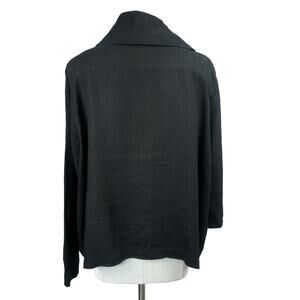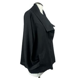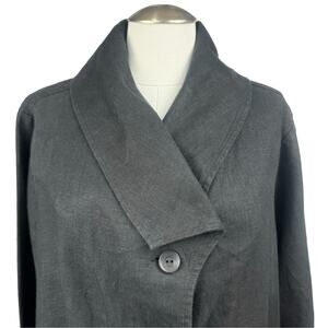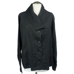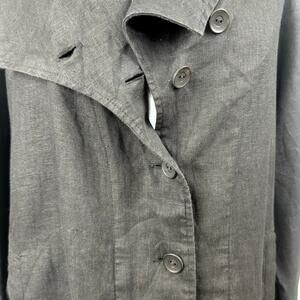 Women's Flax Black Button Up Lagenlook Blazer Long Sleeve Workwear Linen Jacket sz Large