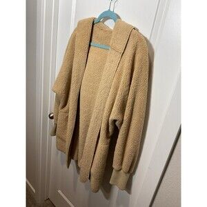 Women’s Fleece Jacket Medium Beige Hooded Fall Winter Coat