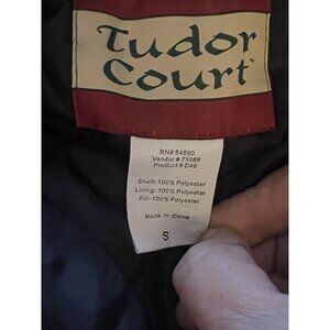 This cute jacket has a quilted lining and closes with snaps. Pockets. Approximate measurements: 21.5 inches armpit to armpit across the front, 27 inches shoulder to hem in the front, 24 inch sleeves.