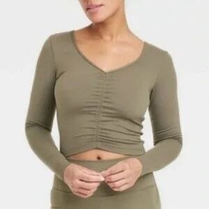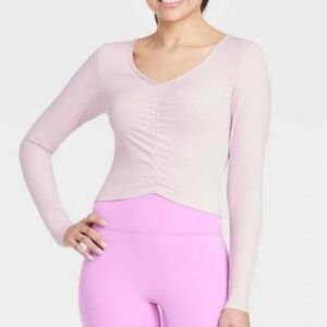 Women's Flex Shirred Cropped Long Sleeve All in Motion Vibrant pink green blue M