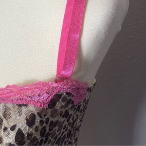 Women's Flirty Hot Pink Lace & Animal Print Coquette Corset Size Large