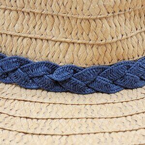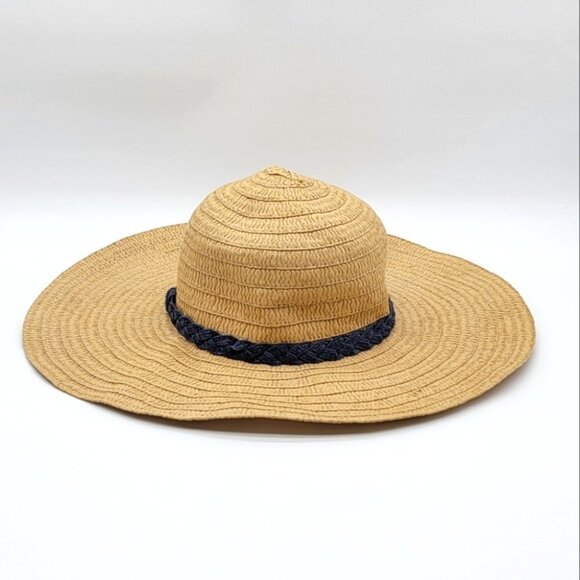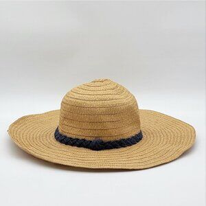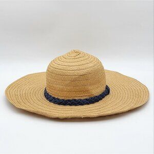 Women's Floppy Wide Brim Straw Summer Hat Tan & Navy
