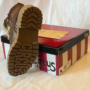 Circus by Sam Edelman's Flora booties bring adventurous hiker style to cold-weather looks in plush faux-shearling trim and a chunky lug platform.