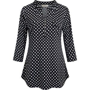 Features:3/4 Cuffed Sleeve/V Neck/Zip up/Cute Fake Pocket/Floral Printed/Polka Dot/Back Pleated/Adjustable Front Zipper/Solid Fabric/A Line/Feminine Detail/Basic T Shirt for Women/Slimming Fit/Business Casual Clothes for Office Work Wear/Ladies Formal Career Top/Fashion and Vintage Design 2024/Pullover/Tunic Tops for Leggings for Women Juniors/Trendy Blouses/Modern Chic Style/Spring/Summer/Fall/Winter Wear