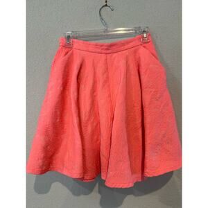 This peachy pink mini skirt offers a flattering A-line silhouette that flares gently from the waist. The textured woven fabric adds a subtle visual interest, perfect for warm weather and casual outings. This skirt is a versatile piece that can be dressed up or down.