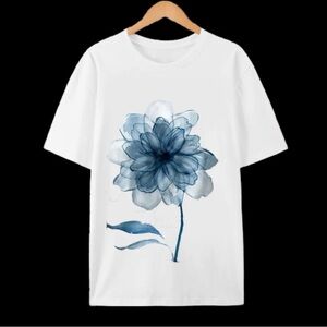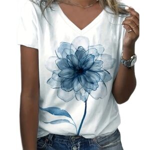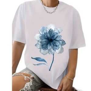 Women’s Floral Blue and White Short Sleeve T-Shirt - Size XL - NWOT