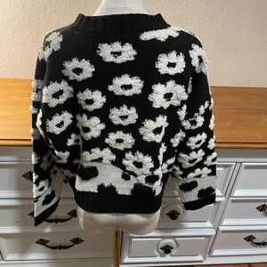 cozy and stylish with this black and white floral sweater. Perfect for any casual outing.
