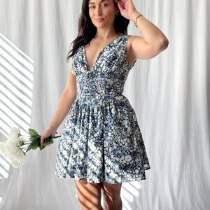 Elevate your style with the Women's Floral Corset Fit Flare Mini Dress with Pockets, a stunning blend of charm and practicality. Designed with a corset-style midsection featuring light and flexible boning for a flattering fit, this dress also offers back smocking and a hidden zipper for comfort and ease. The self-tie detail and thick straps add a touch of elegance, while the fully lined design ensures a smooth silhouette. Adorable and medium-length—not too short—this dress is perfect for a variety of occasions. And yes, it has pockets! The fit-and-flare shape provides a playful yet sophisticated look, and the daisy print in soft blue hues exudes a timeless feminine vibe. Whether for brunch, a garden party, or date night, this dress is a wardrobe essential. Details: 100% cotton Blue Floral print No stretch Pockets V-neck V-back Smocking Hidden zipper Corset waist Light flexible boning Fully lined Size & Fit: The Floral Corset Fit & Flare Mini Dress with Pockets in Blue runs small. If you are in between sizes you may have to size up. The fabric does not stretch. The smocked back allows for some flexibility. The zipper is in the center of the back. Refer to the measurements and choose your perfect fit. The model is wearing size medium. See photos for model specs. (The size medium is approximately a women's size 6.) S - Chest: 32", Waist: 26", Length: 33.5" M - Chest: 34", Waist: 28", Length: 34" L - Chest: 36", Waist: 30", Length: 34.5"