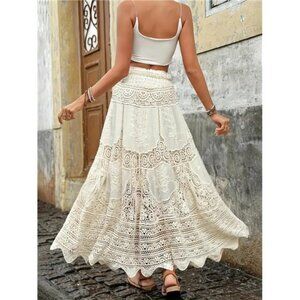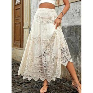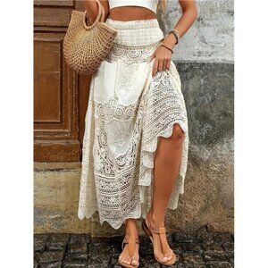 Women's Floral Embroidered Knit Skirt Lace Beige