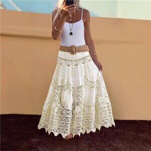 Traditional swing boho skirt, made of breathable knitting material, which is lightweight and cool to wear in hot weather, also spring, fall and early winter.
