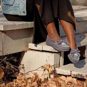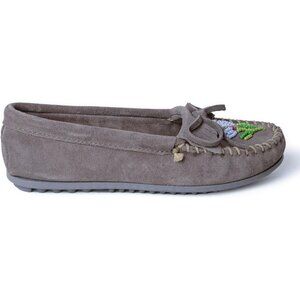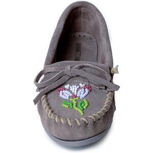 Women's Floral Embroidery Flower Design Leather Upper Gray Slipper Boot