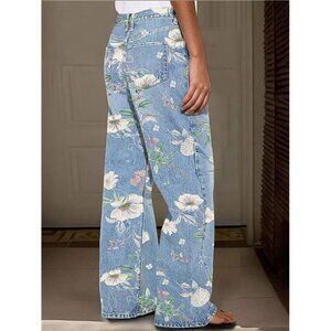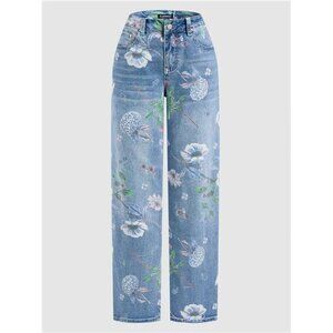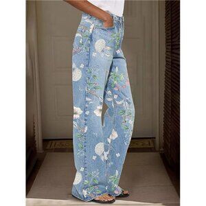Feature: Floral Embroidery, High Waist, Wash, Straight Leg Jeans,Vintage.Elevate your day with our jeans! Experience comfort, confidence, and vintage inspired flair.