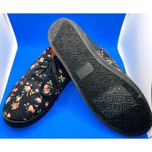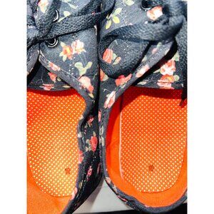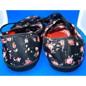 Womens Floral Lace-Up Canvas Shoes Black Floral Print Size 10 Garden Casual Styl