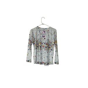 Womens Floral Long Sleeve Thermal Top White Multicolor New