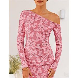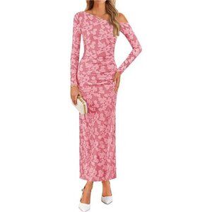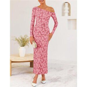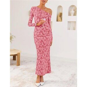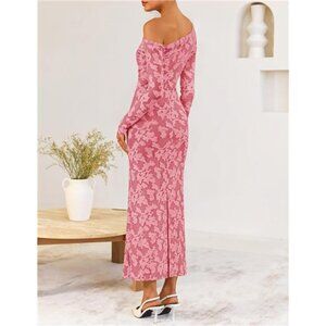 Women's Floral Off Shoulder Bodycon Maxi Dress Pink