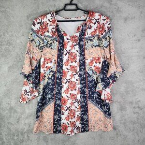 Women's Floral Patchwork Tunic Top Blouse w/ Bell Sleeves Multicolor Size S