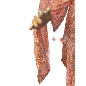 Womens Floral Pink Kaftan Dress Tassels - M/L - Lagenlook Bohomenian
