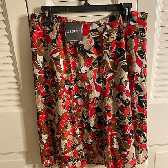This is a Women's George skirt in size 10 with a flowy floral print. Great for the Spring! Could possibly fit up to a size 12 due to the elastic waistband and roomy cut of the skirt.
