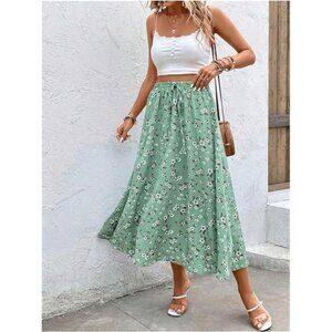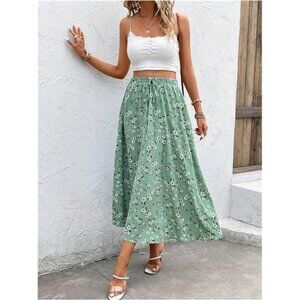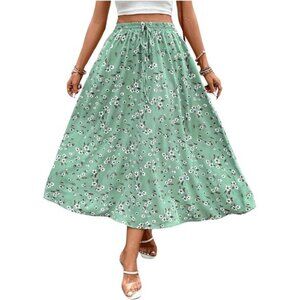 Boho Skirt, Floral Skirt, Flowy Skirt, A Line, Tiered Layered, Ruffled Trim, Elastic High Waist