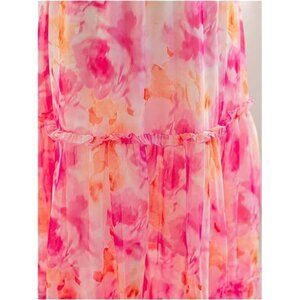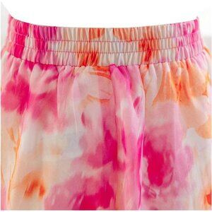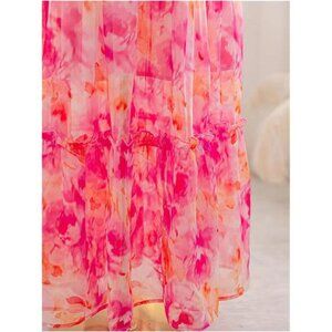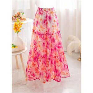 Women's Floral Print Tiered Layered Long Skirt Pink