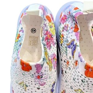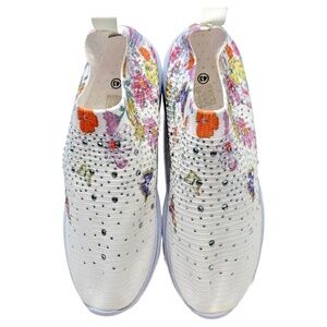 Women's Floral Rhinestone Knit Slip-On Sneakers Size 10.5 Colorful Shoes NWOT