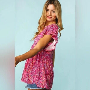 Women’s Floral Ruffle Cute Flowy Peplum Spring Babydoll Top