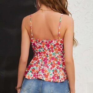 Women's Floral Ruffle Top Tie Front Sleeveless V Neck Adjustable Spaghetti Strap Cami — Perfect for summer days enjoying the sunshine or dressing up for a night out.